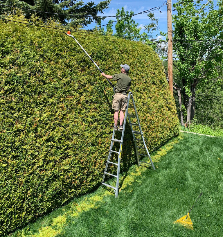 Découvrez nos services de taillage et rabattage de haie de cèdre.